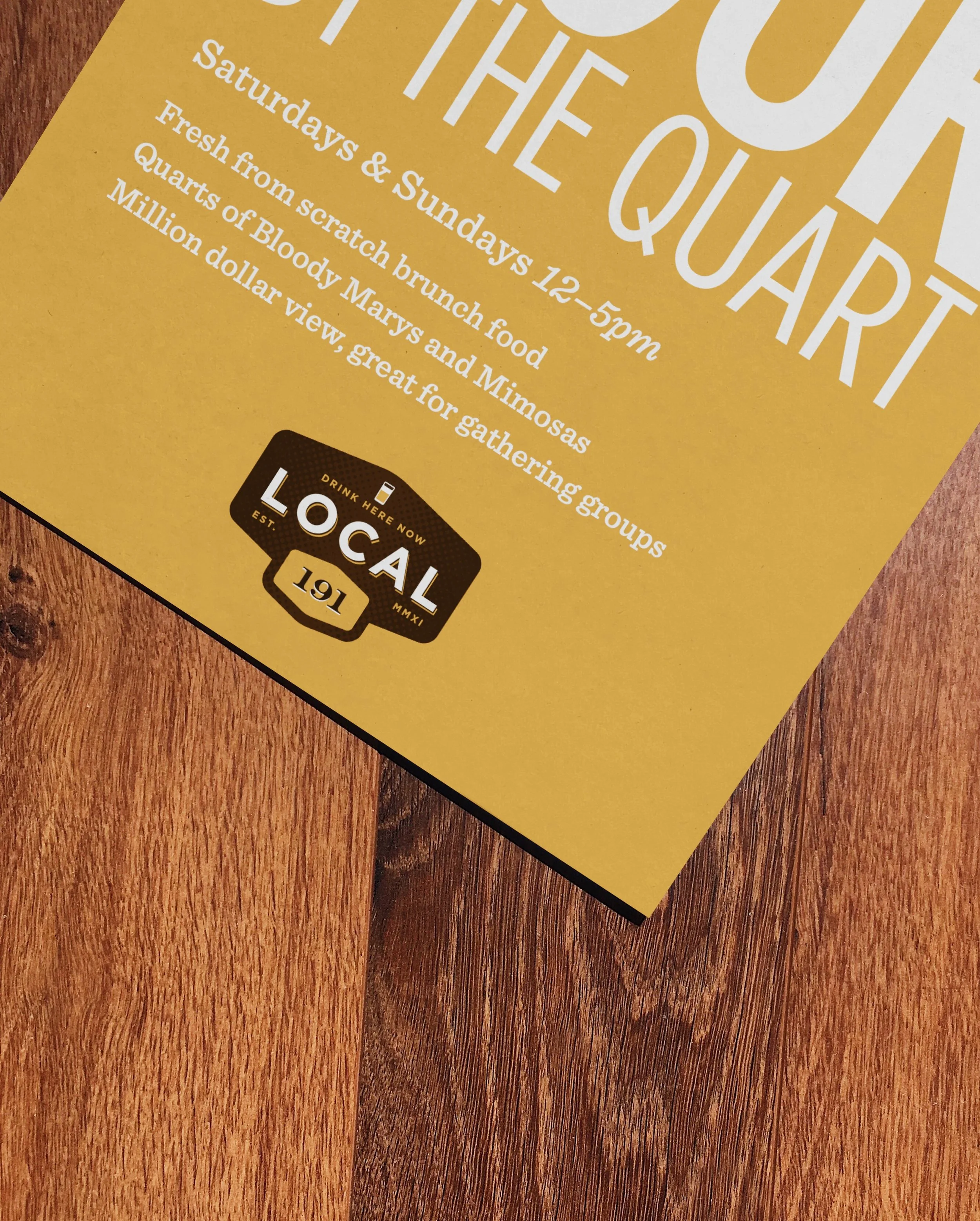 From 2012 to 2019 we designed the brand for multiple media and platforms: digital, interior graphics and signage, marketing and advertising, print collateral and merchandise. We collaborated on writing and photography to create a distinct and memorable personality for Local 191.